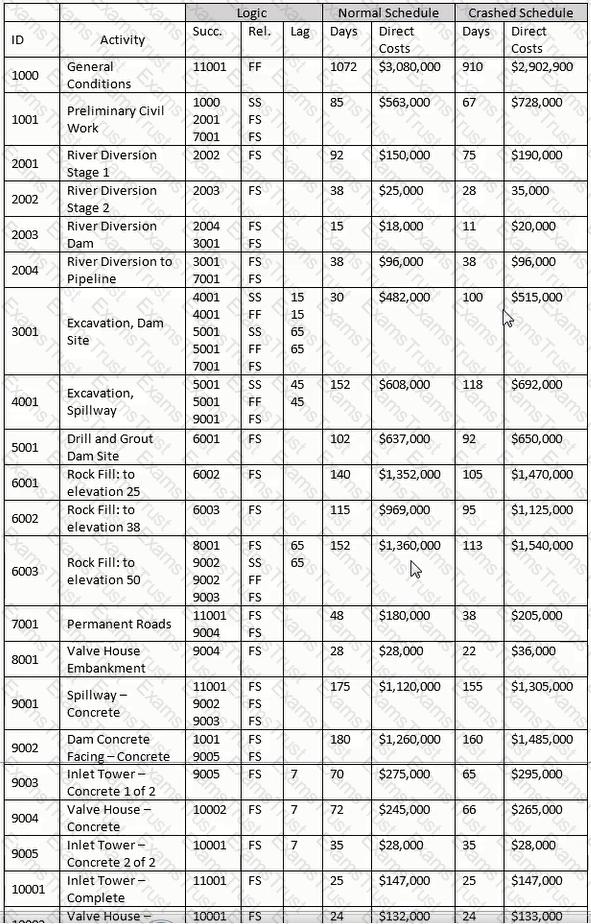 Assuming activities 2001 through 2004 comprise the same WBS element, construct a WBS summary activity for activities 2001 through 2004. Use the normal schedule, what is the cost of the activity?
