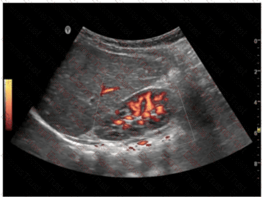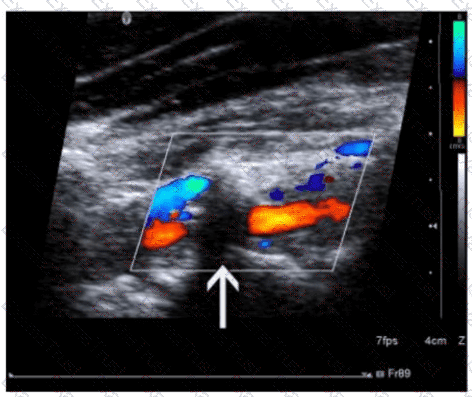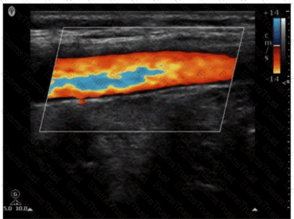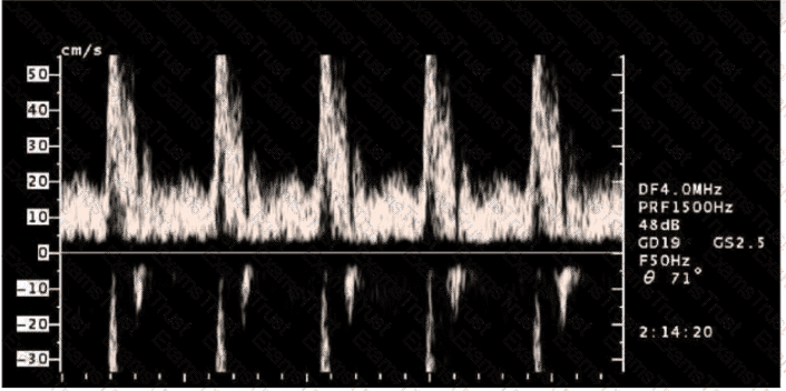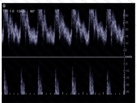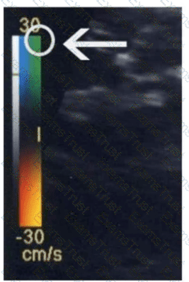 Which pulsed-wave Doppler adjustment would be appropriate to correct the aliasing seen in this image?