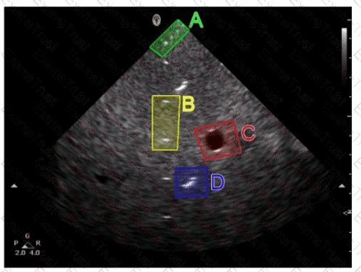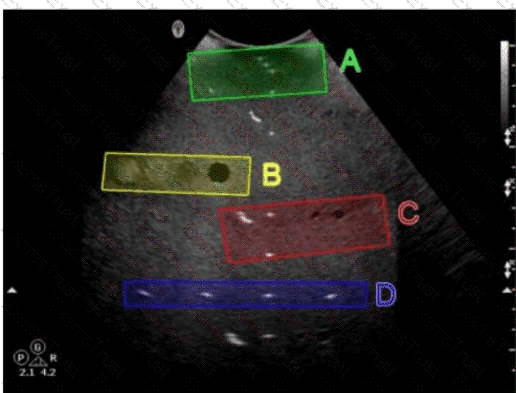 Which target group in this image of a tissue-mimicking phantom is used to evaluate axial resolution?