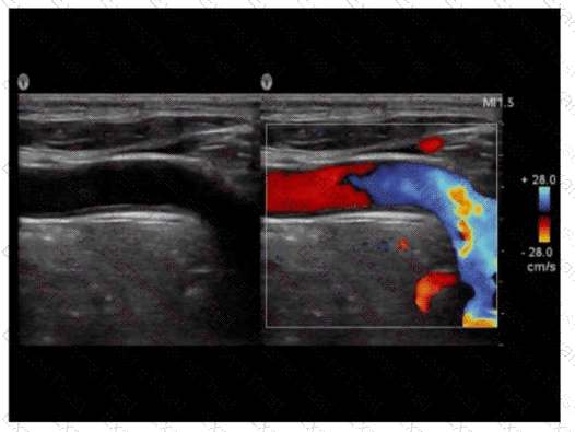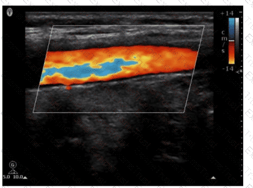 During a color Doppler scan, which angle to flow would most likely result in no color being visualized?