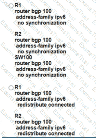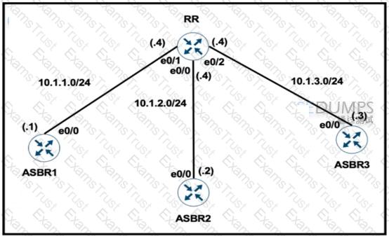 Refer to the exhibit The administrator configured the network devices for end-to-end reachability, but the ASBRs are not propagating routes to each other Which set of configurations resolves this issue?