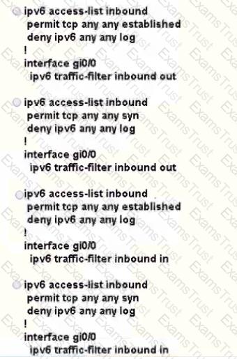 Refer to the exhibit. A network administrator configured an IPv6 access list to allow TCP return traffic only, but it is not working as expected. Which changes resolve this issue?