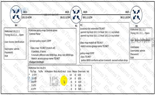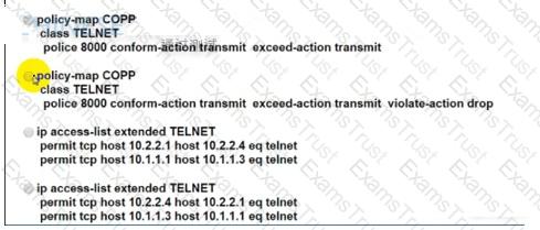 An engineer implemented CoPP to limit Telnet traffic to protect the router CPU. It was noticed that the Telnet traffic did not pass through CoPP Which configuration resolves the issue?