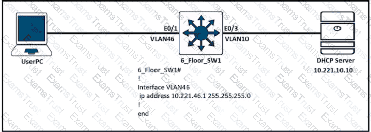 Refer to the exhibit. The DHCP client is unable to receive an IP address from the DHCP server RouterB is configured as follows: