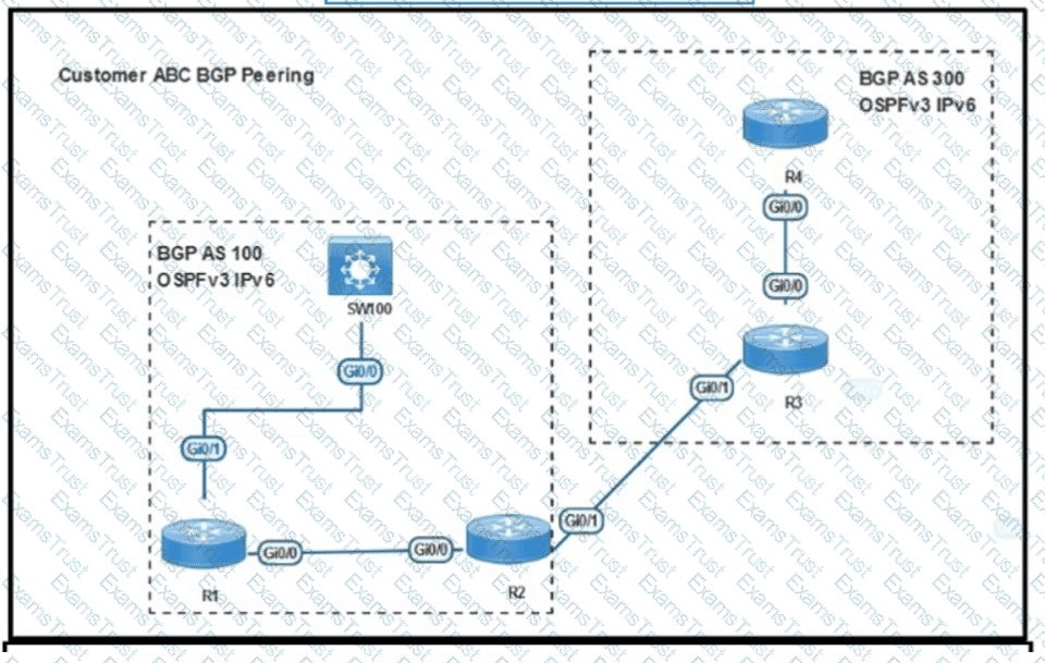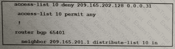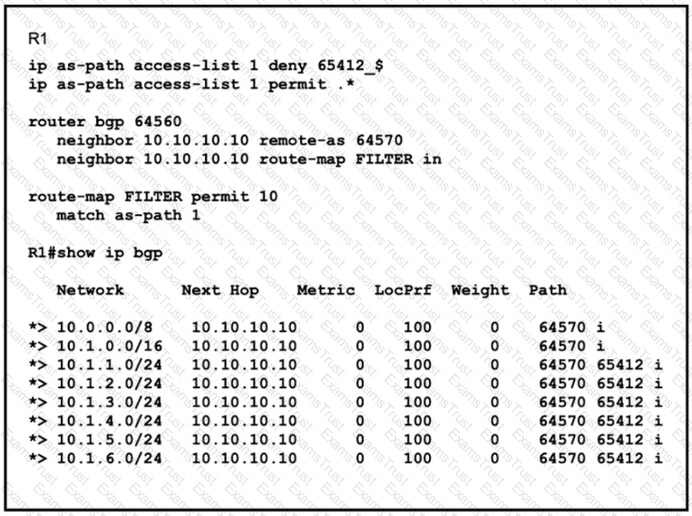 A company with autonomous system number AS65401 has obtained IP address block 209.165.200.224/27 fro, ARIN. The company needed more IP addresses and was assigned block209.165.202.128/27 from ISP2. An engineer is ISP1 reports they are receiving ISP2 routes from AS65401. Which configuration onR1 resolves the issue?
