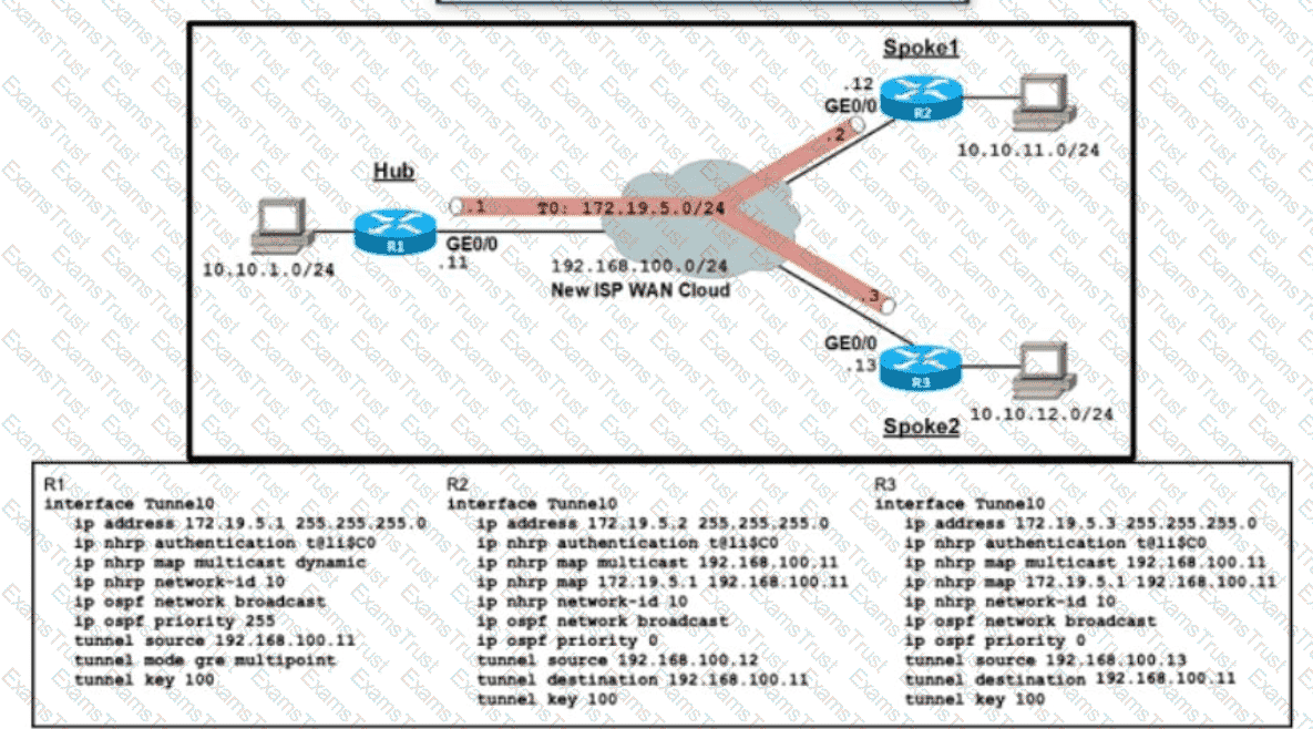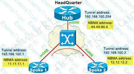 An engineer has configured DMVPN on a spoke router. What is the WAN IP address of another spoke router within the DMVPN network?