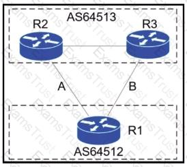 A network engineer for AS64512 must remove the inbound and outbound traffic from link A during maintenance without closing the BGP session so that there ............ a backup link over link A toward the ASN. Which BGP configuration on R1 accomplishes this goal?