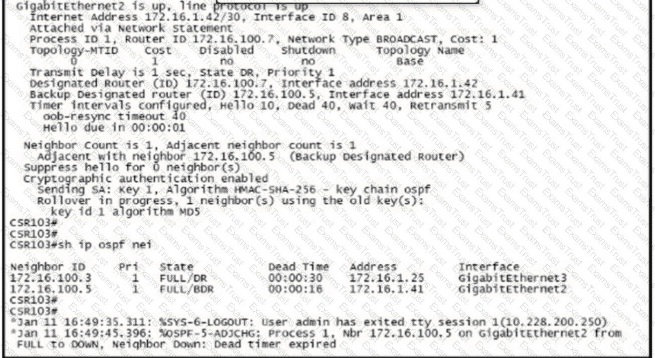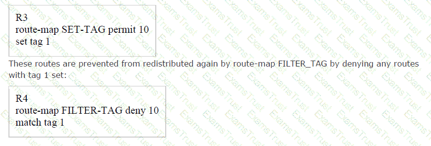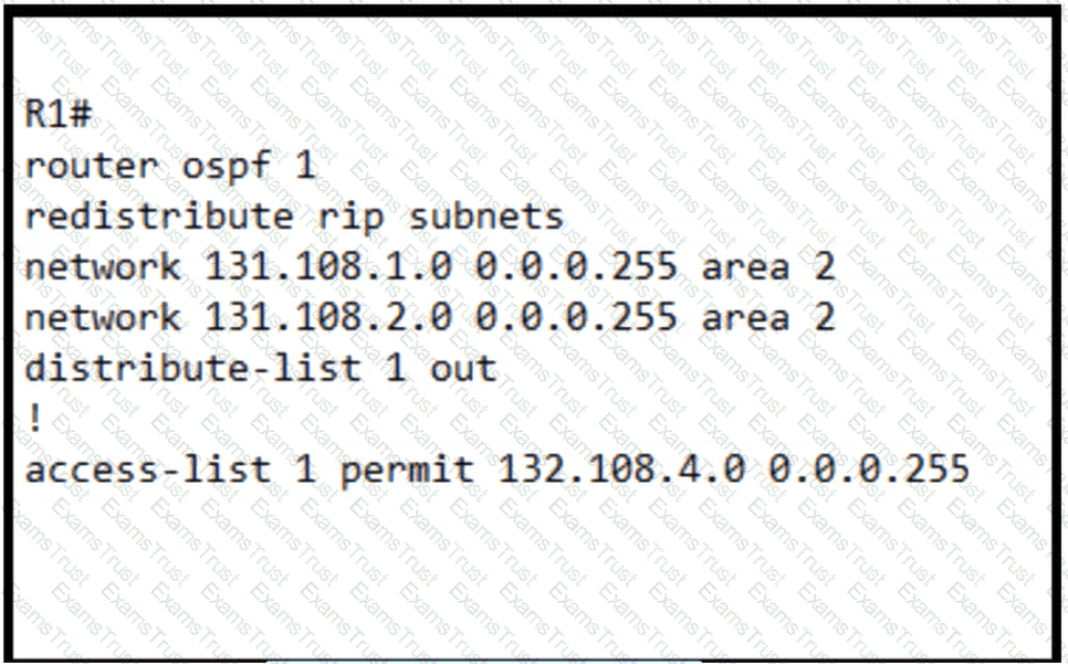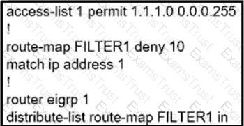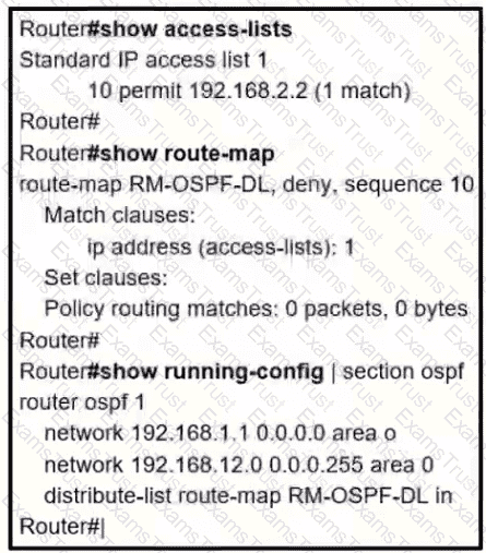 configuration that is shown. The route is still present in the routing table as an OSPF route. Which action blocks the route?