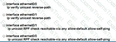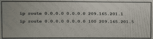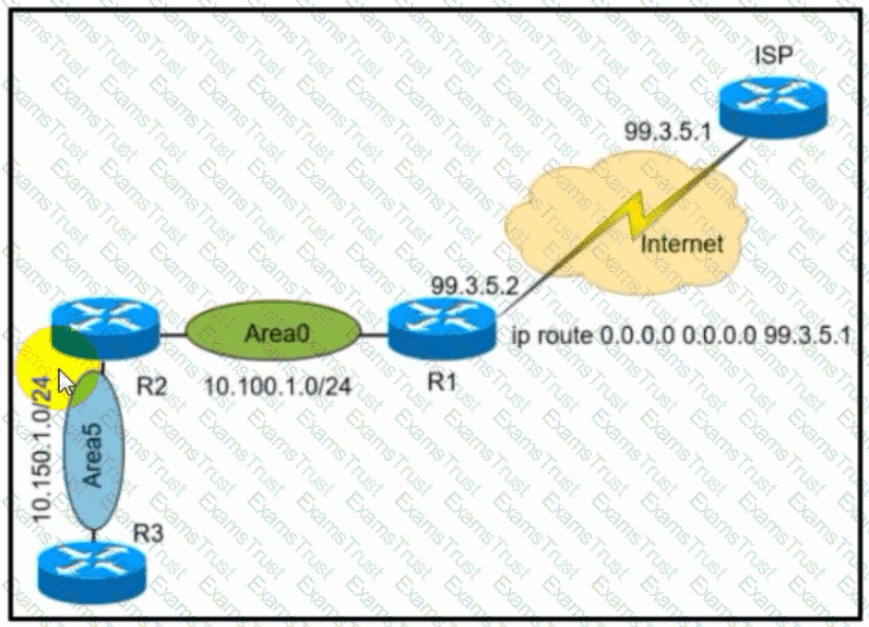 Refer to the exhibit. A network administrator redistributed the default static route into OSPF toward all internal routers to reach to Internet. Which set of commands restores reachability to the Internet by internal routers?