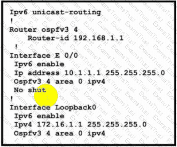 Refer to the exhibit. The network administrator configured the branch router for IPv6 on the E 0/0 interface The neighboring router is fully configured to meet requirements, but the neighbor relationship is not coming up. Which action fixes the problem on the branch router to bring the IPv6 neighbors up?
