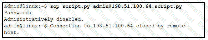 A network administrator has developed a Python script on the local Linux machine and is trying to transfer it to the router. However, the transfer fails. Which action resolves this issue?