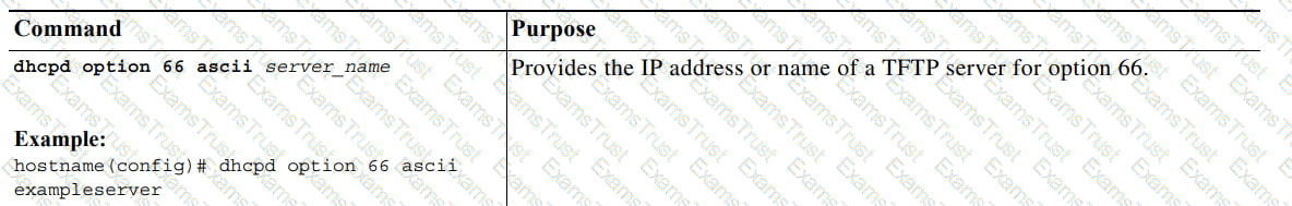 An engineer configured a DHCP server for Cisco IP phones to download its configuration from a TFTP server, but the IP phones failed to toad the configuration What must be configured to resolve the issue?