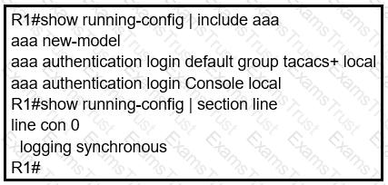 Refer to the exhibit. An engineer must troubleshoot an issue with the aaa authentication that affected the user's login to router R1. Which command allows the configured user to authenticate?
