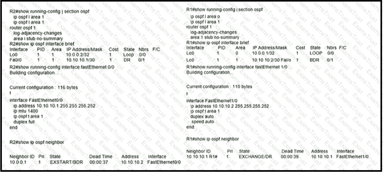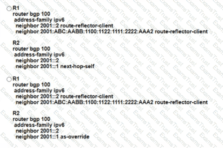 The neighbor relationship is not coming up Which two configurations bring the adjacency up? (Choose two)