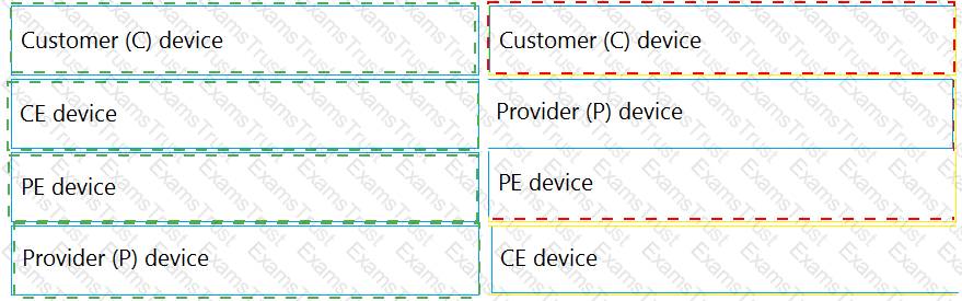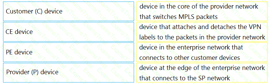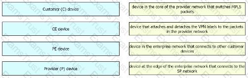 Drag and drop the MPLS VPN device types from me left onto the definitions on the right.