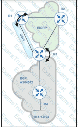 Routing protocols are mutually redistributed on R3 and R1. Users report intermittent connectivity to services hosted on the 10.1.1.0/24 prefix. Significant routing update changes are noticed on R3 when the show ip route profile