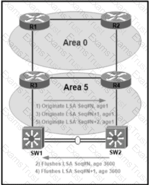 The output of the trace route from R5 shows a loop in the network. Which configuration