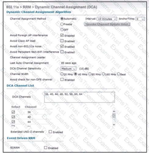 Refer to the exhibit An engineer is troubleshooting an issue with non-Wi-Fi interference on the 5-GHz band The engineer has enabled Cisco CleanAir and set the appropriate traps, but the AP does not change the channel when it detects significant interference Which action will resolve the issue?