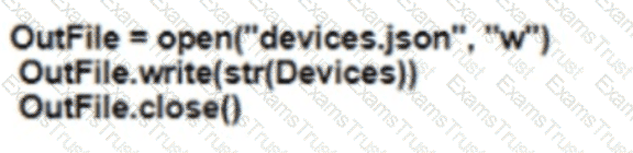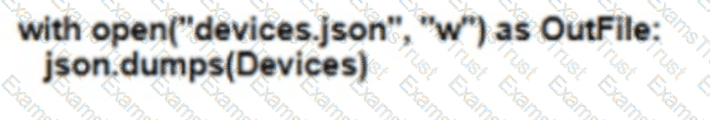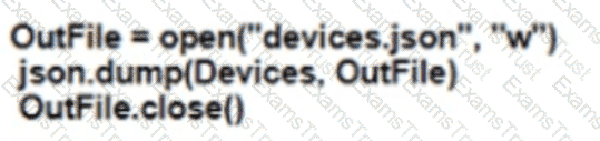 Refer to the exhibit. Which Python snippet stores the data structure of the device in JSON format?