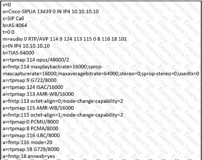 Refer to tho exhibit. A customer reports that SIP voice calls are using G.711 codec instead of G.729. The administrator checks the SIP signaling in the logs and sees the SDP shown. What will the administrator see in the logs if the right configuration change was made to resolve the issue?