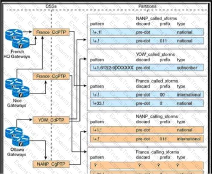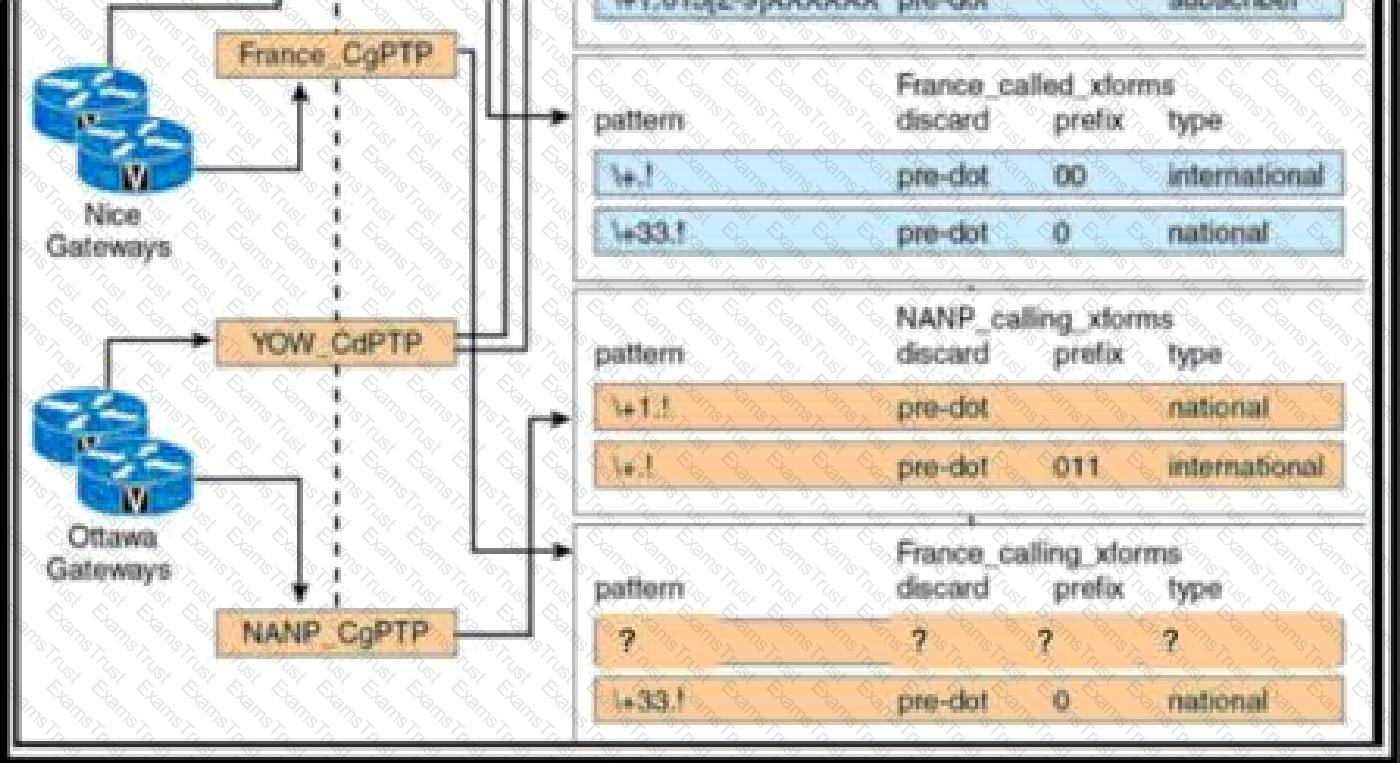 Refer to the exhibit A call from +1 613 555 1234 that is sent out through the Nice Gateways should result in a calling party of 001 613 555 1234 with the numbering type "international' Which configuration accomplishes this goal?