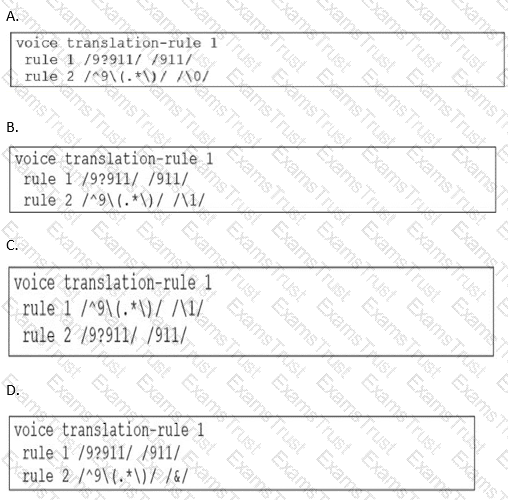 An administrator needs to stop the leading 9 from outbound calls on an IOS Voice Gateway and ensure that the system handles 911 emergency calls Which configuration is needed to accomplish this task?