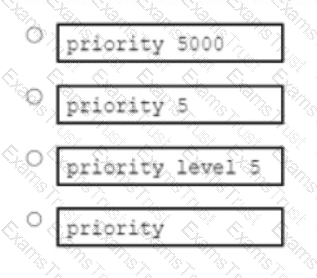 An engineer configures Class-Based Weighted Fair Queuing, but must still configure Low Latency Queuing to prioritize voice audio traffic and guarantee 5 Mbps of bandwidth. Which Cisco IOS command must be run in the voice class map?