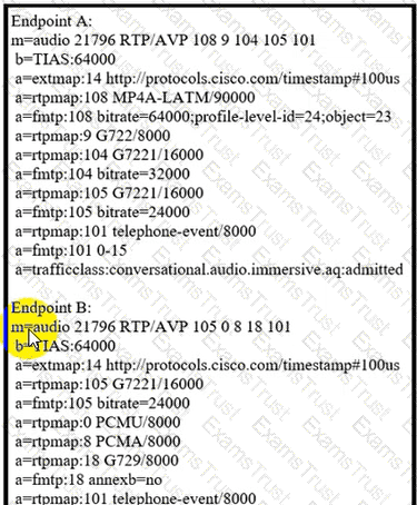Refer to the exhibit. Endpoint A calls endpoint B. What is the only audio codec that is used for the call?