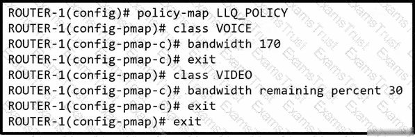 An engineer must modify the existing QoS policy-map statement to implement LLQ for voice traffic. Which change must the engineer make in the configuration?