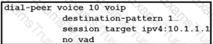 An engineer builds the configuration on a Cisco IOS gateway for the dial-peers: