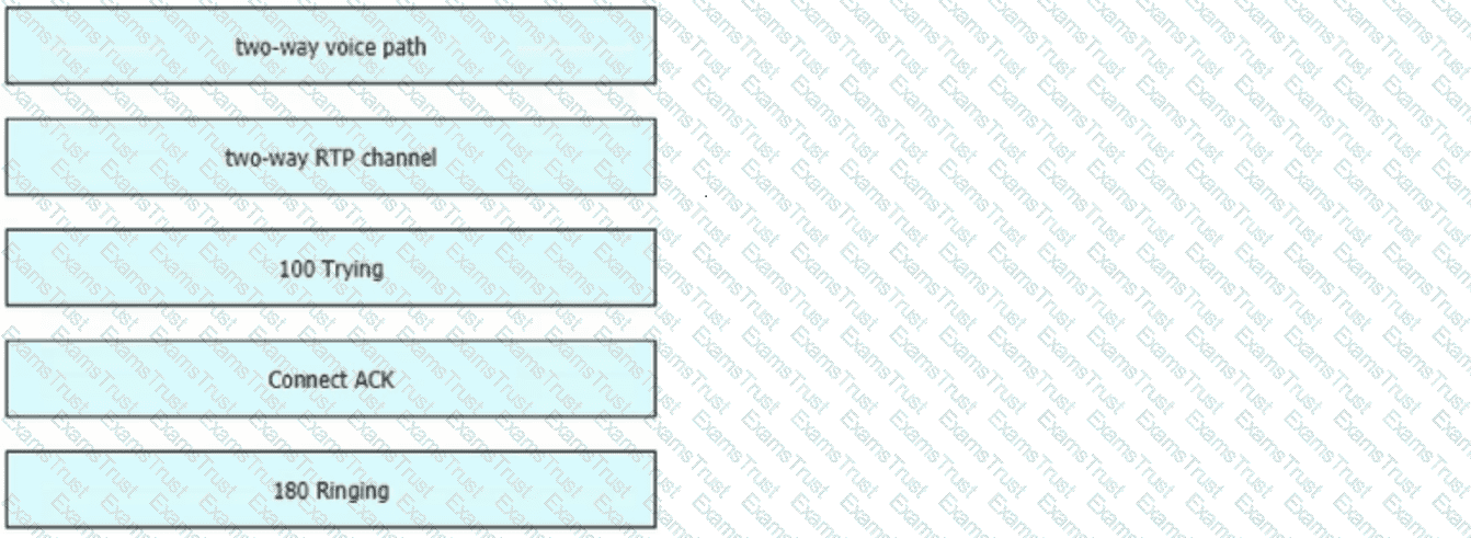Drag and drop the flow step labels from the left into the correct order on the right to establish this call flow: