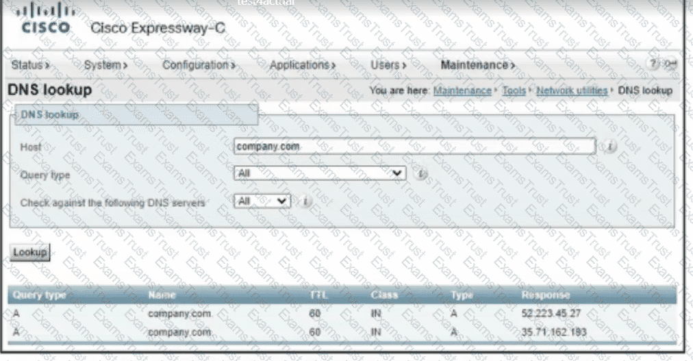 engineer runs DNS lookup tool in Cisco Expressway-C to troubleshoot tie What IS me cause of the issue?