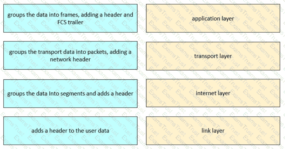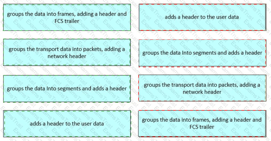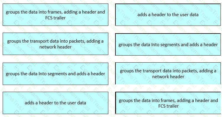 Refer to the exhibit. Drag and drop the steps in the TCP/IP encapsulation process from the left onto the corresponding layer on the right.
