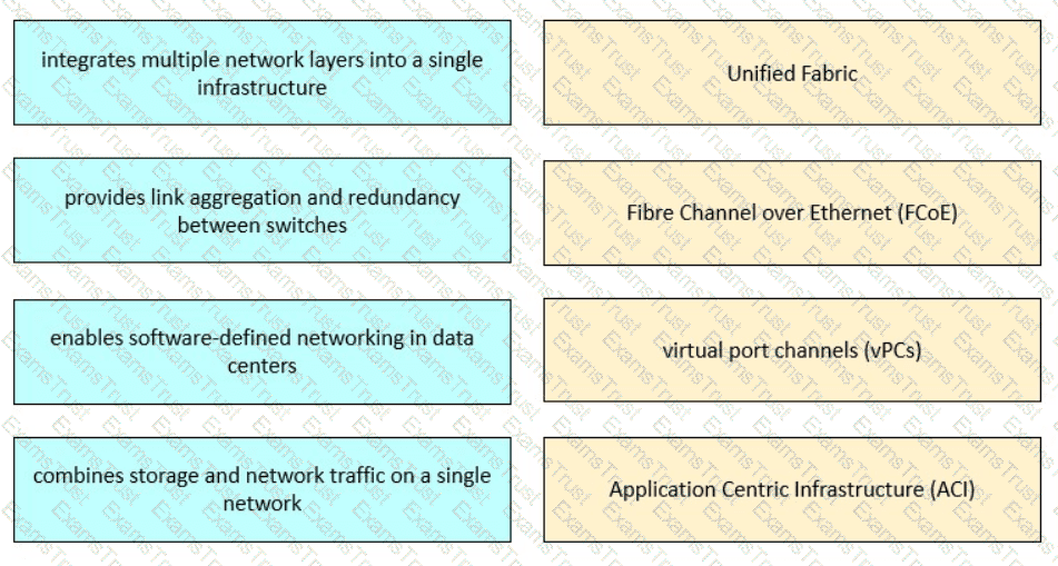 Drag and drop the functions from the left onto the corresponding Cisco data center technologies on the right.