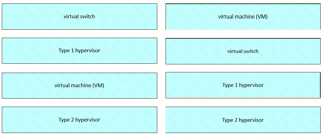 Drag and drop the virtualized data center components from the left onto the corresponding descriptions on the right.