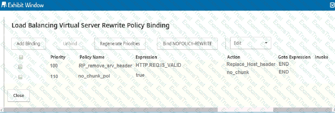 Click the ‘Exhibit’ button to view the screenshot of the relevant policy binding.