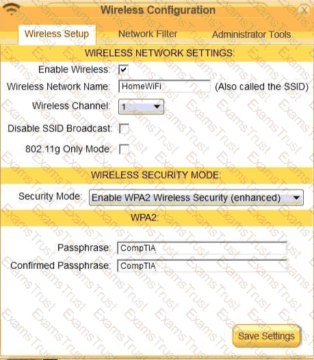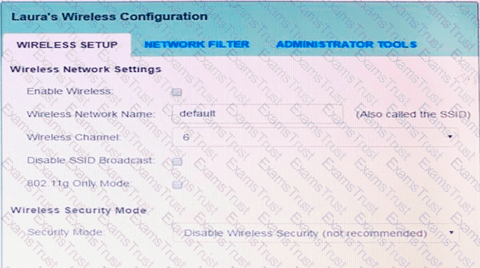 Laura, a customer, has instructed you to configure her home office wireless access point.