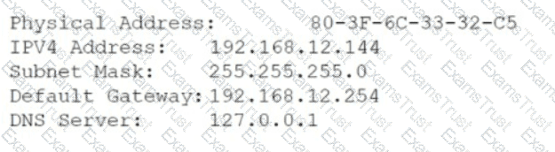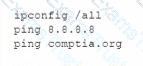 A user is unable to access the internet on a PC. A technician examines the PC and runs the following commands:
