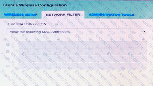 Finally, Laura wants to ensure that only her laptop and Smartphone can connect to the network.