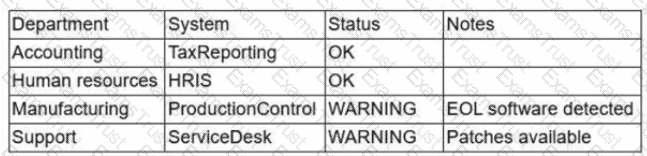 A manufacturing plant is updating its IT services. During discussions, the senior management team created the following list of considerations: