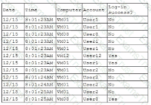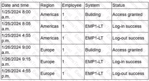 A company’sSIEMis designed to associate the company’sasset inventorywith user events. Given the following report: