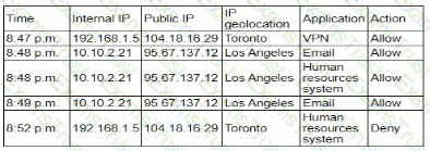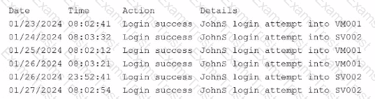 A company’s internal network is experiencing a security breach, and the threat actor is still active. Due to business requirements, users in this environment are allowed to utilize multiple machines at the same time. Given the following log snippet: