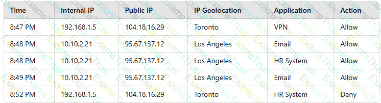 A user reports application access issues to the help desk. The help desk reviews the logs for the user: