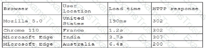 A company receives several complaints from customers regarding its website. An engineer implements a parser for the web server logs that generates the following output: