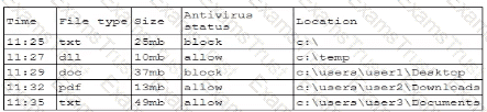 A security engineer receives an alert from the SIEM platform indicating a possible malicious action on the internal network. The engineer generates a report that outputs the logs associated with the incident: