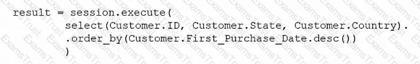 Which of the following ORM snippets would return the ID, state, and country of all customers with the newest customers appearing first?