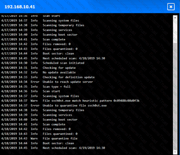 A systems administrator receives an alert that a company's internal file server is very slow and is only working intermittently. The systems administrator reviews the server management software and finds the following information about the server: