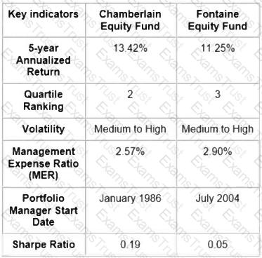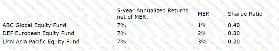 You have been researching Canadian equity mutual funds for a new client. You come across the following information.