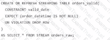 A dataset has been defined using Delta Live Tables and includes an expectations clause: