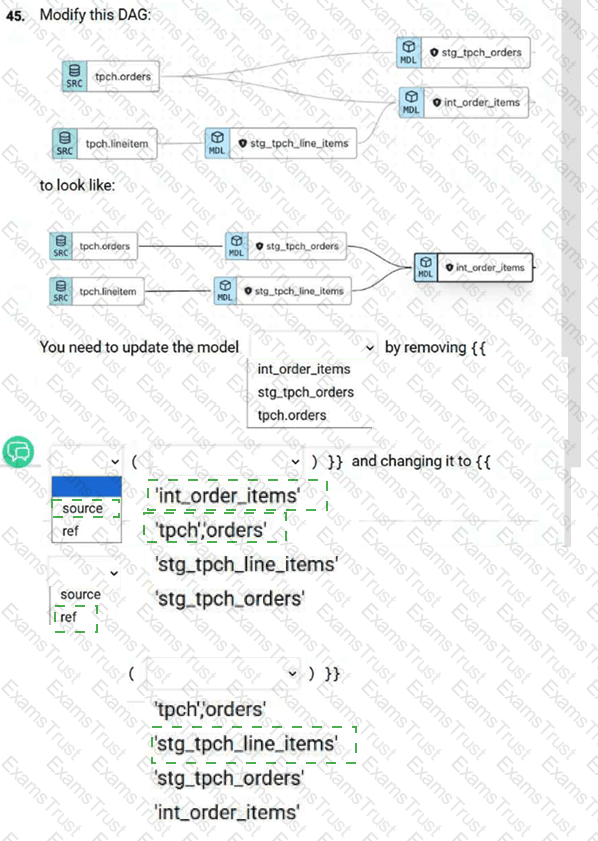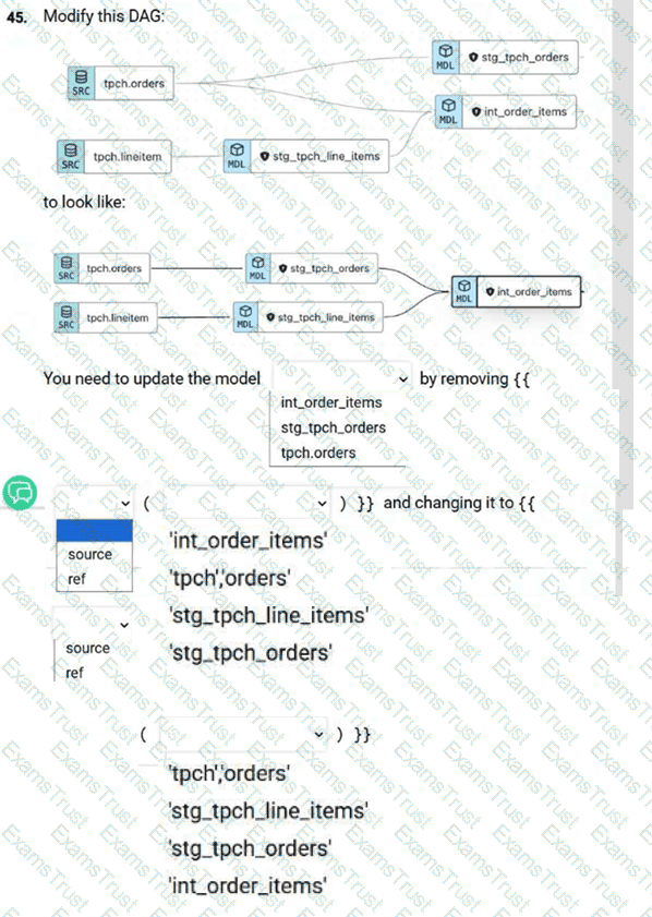 Which two code snippets result in a lineage line being shown in the DAG? Choose 2 options.